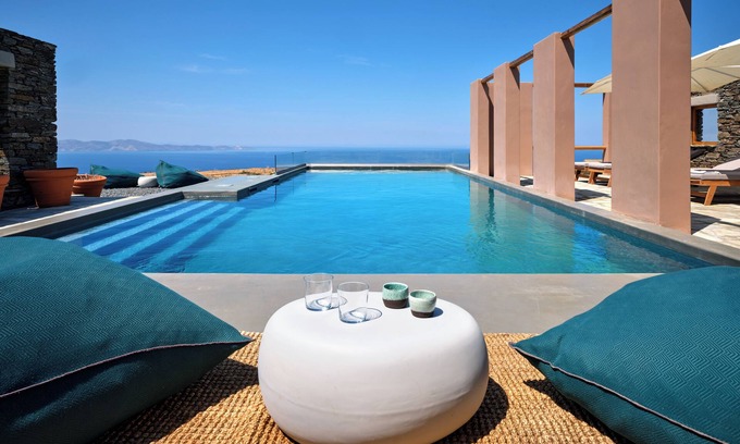 Welcome to Under the Sun Cycladic Village, an exquisite adults-only hotel that promises a romantic getaway perfect for your wedding. Nestled in the enchanting surroundings of Exomvourgo on the beautiful island of Tinos, this stunning property provides an idyllic setting for couples who wish to celebrate their love in style. With its serene atmosphere and breathtaking vistas, you will find everything you need to create unforgettable memories as you embark on your journey together.