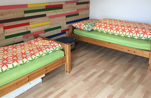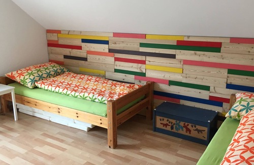 Children welcome: v. a. the little guests can feel comfortable in our house. There is plenty of room to play in the spacious living area. Various toys, picture and children's books, children's CD's and movies as well as painting things are available for use. High chairs and children's cutlery ensure relaxed meals. If required, a baby and cot and a changing mat are available. In the garden, a large sandbox invites for digging and building. Toboggans are available for tobogganing.