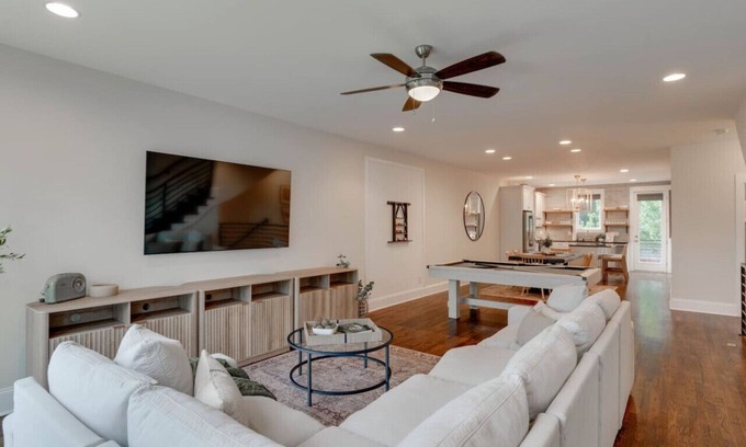 Situated just off Eighth Avenue and a mere 2.5 miles from the electric energy of Broadway's Honky Tonks, you'll have access to a plethora of local bars, restaurants, and parks within walking distance. The immediate area is brimming with options for entertaining your guests and celebrating your love story. Whether you prefer to explore on foot or utilize rideshare services like Uber or Lyft, getting around is effortless. Plus, if you have a larger group, we offer five additional units in the same complex, providing ample space for everyone involved in your wedding festivities. Experience the magic of Nashville while creating unforgettable memories at Unforgettable Townhome-Close to Broadway-10 Beds!