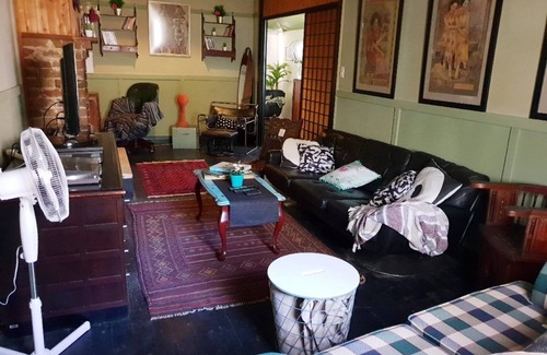 Built in the 1920's.... so 100 years worth of history & trinkets including an original old door from an old 'rattler train' & beautiful lead light windows!