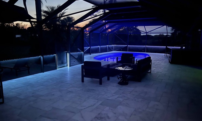 Stuart is waiting for you at this incredible pool house. With 2 king beds, 2 full bath, AC, Private pool in the spacious lanai, 2 acres fully fenced in back yard and just 10 minutes from the ocean. Enjoy the conveniences of home without the worry. Full stocked kitchen to Laundry. A Level 2 EV charger should you need along with Wi-Fi for your stay.
