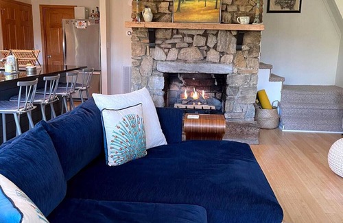 The A-Frame on Blueberry Hill is a 2 bedroom, 2 bath cabin that sits on 5 acres made up of rolling hills, 2 small ponds & of course its namesake; a Blueberry orchard. In addition to the king & queen bedrooms, there is an upstairs loft area with a queen bed adjacent to the bathroom, as well as a recently renovated basement with a set of bunk beds and an additional queen bed.