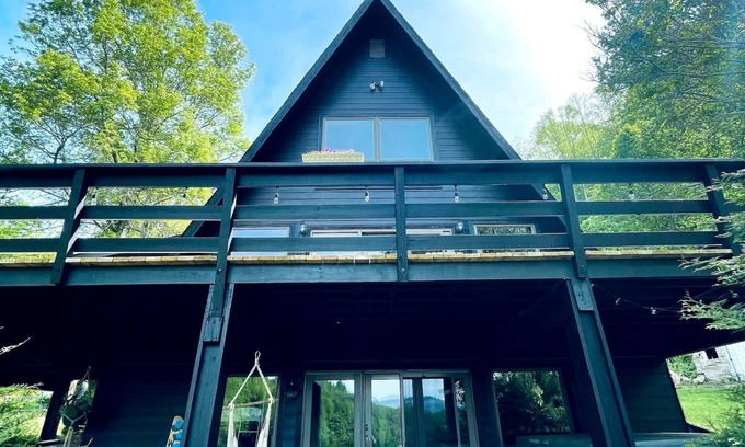 Unique A-Frame Cabin near Boone! Sleeps 6, Hot Tub, large deck | House in Vilas