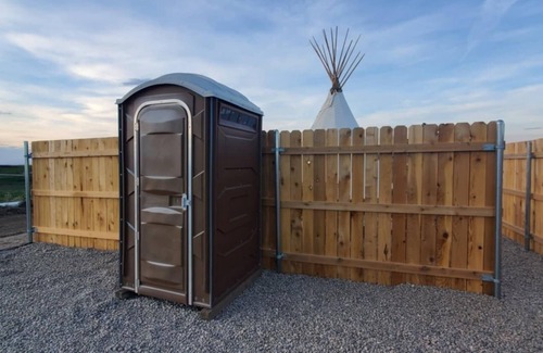 Please note the Tipis are subject to weather and temperatures. They will be colder inside on cooler nights and warm inside on hotter days. There is no electricity or running water out at the tipis at this time. We have added a cooling system to our tipis! To use the cooling system, a block/bag of ice will be needed to be purchased. You can purchase a block/bag of ice from the town of New Plymouth 3 miles away from the tipis. To use the cooling system, place the block/bag of ice inside the cooler and push the power button on the fan!
