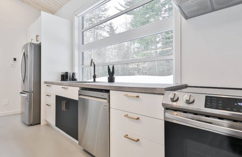 Unique and Zen open concept house with mezannine, high ceilings near ski resorts is located in Les Pays-d'en-Haut Regional County Municipality. Unique and Zen open concept house with mezannine, high ceilings near ski resorts provides accommodation, featuring Child Friendly, Laundry, Air Conditioner, among other amenities. This House features Child Friendly, Laundry, Air Conditioner, to make your stay a comfortable one.