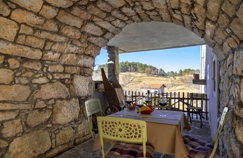 This unique apartment has two bedrooms, a living room with a flat-screen TV, a dining room and a bathroom. The accommodation is self-catering with a fully equipped kitchen. You can enjoy your meal in the stone covered terrace with view on the surrounding nature.