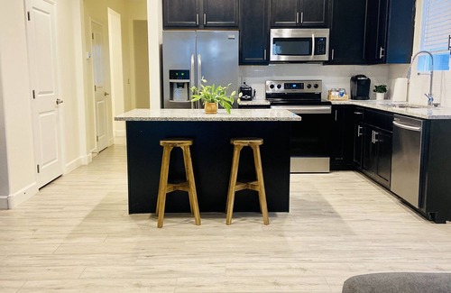 The open-concept living area invites you to relax, stream your favorite shows on Disney Plus, or enjoy cooking and dining together in the fully equipped kitchen. A connected laundry room leads to the garage, providing convenient parking or storage options.