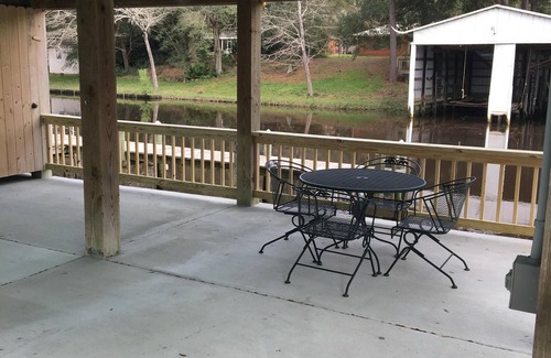 This stilted cabin is located directly on the Bon Secour River near Foley, Alabama. You can fish from the cabin's own dock or bring your boat and/or kayak and explore the river. There is a boat launch located within the gated community, but only small boats or kayaks can be launched from there. For launching larger boats, there are a couple of launches in the vicinity.
