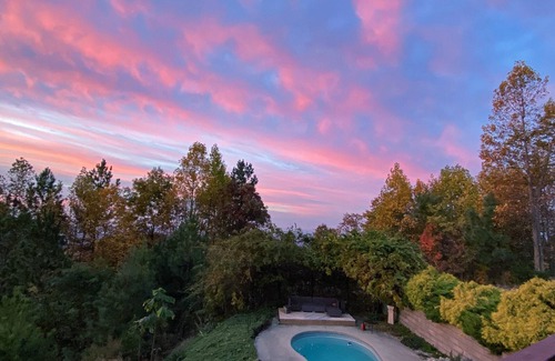 We would like to invite you to our Beautiful Mountain Deltec Cabin. We chose a Deltec cabin for their quality & unique design, and love our choice. It is the perfect place for a roomy romantic getaway for two with your own private pool, while being large enough to an extra couple for a quiet and relaxing time in the Blue Ridge Mountains.