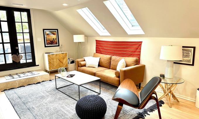 Ideal for a Chicago getaway, a business trip, or to visit family & friends! This comfortable 3rd-floor Penthouse Loft (note: 2nd level above street) unit is a premium owner's unit located above an acclaimed beautifully designed restaurant wine bar in Chicago's charming Roscoe Village - one of the city's premier neighborhoods - with 850 plus square feet to relax and enjoy including amenities like an in-unit spiral staircase, skylights throughout, French doors to large private outdoor deck, gas fireplace, large flat screen smart TV, free wifi, comfortable modern seating, fully outfitted chef kitchen with farm sink, stainless appliances, beautiful stone countertops and wood cabinets, breakfast island, modern dining table, air conditioning, and more. Inquire directly to the owner for extended stay pricing or further information. Sopra Volo Guest Suites is conveniently located on Chicago’s north side just a mile and a half west of Wrigley Field in Chicago's charming Roscoe Village neighborhood, “A Village within the City.” This truly unique neighborhood offers acclaimed dining to fit any style or budget, boutique shopping, galleries, cafes, gelato, parks, and easy access to grocery shopping, a nearby Farmer's Market on Sundays in the summer months, and public transportation. Just 3 blocks from the Paulina Brown Line (connects to the Red Line train, Mag mile, and the Loop), 4 blocks from Whole Foods, 2 blocks from the Belmont or Addison Street Buses (to the lakefront or Wrigley), and steps away from the Damen Avenue Bus (skip the car and save your money). Perfect for visiting friends or family, a girl's weekend in Chicago, a business trip, or for out-of-town guests - this unit is comfortable, secure, and close to amenities.