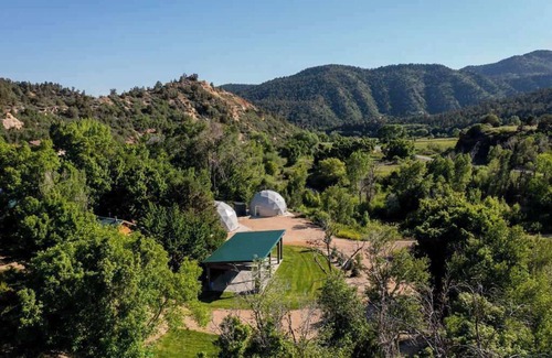 Welcome to Zen Zion Evergreen, a brand-new geodesic dome nestled in the serene landscapes of Glendale, Utah. This unique retreat offers an unparalleled experience for nature lovers, adventure seekers, and stargazing enthusiasts. Nestled in the trees yet just minutes from restaurants and the parks, this dome offers both seclusion and convenience! Equipped with comfortable beds, a kitchenette, and a full bathroom. The Virgin River runs right through the property! Stargaze from the hot tub or cold plunge in the river! Book now!