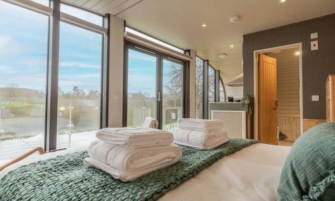 As you step in, you will be welcomed into the open plan living area overlooking a lake and stunning panoramic views. The kitchenette is fully equipped with all the basics you need to enjoy a cosy cooking night together or to prepare a big breakfast, to fuel you for a day of exploring!
