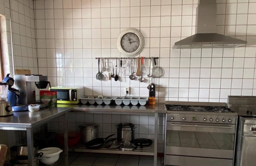 Ground floor: (hall, Kitchen(electric kettle, cooker(5 ring stoves, gas), hood, coffee machine(filter), coffee machine(pads), oven, microwave, dishwasher, fridge, freezer, Blender), bedroom(single bed(90 x 200 cm), double bed(twin duvet , synthetics, two single fitted sheets, 90 x 200 cm), shower, washbasin, toilet), bedroom(double bed(twin duvet , synthetics, two single fitted sheets, 90 x 200 cm), shower, washbasin, toilet), sanitary facility(2x toilet, toilet), shared room(TV, 2x dining table, seating area, CD player, stereo unit, bar, darts, 3x high chair, playpen, party games, toys), playpen)