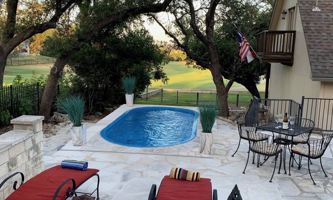 Welcome to your Hill Country hideaway located in a beautiful and serene setting on the signature 7th hole of Point Venture Golf Course with private access to Lake Travis. It's time to exhale and enjoy the tranquil outdoors on over 2000 square feet of tiered stone patios. Refresh, relax and kick back with a dip in your private plunge pool overlooking the golf course. Fire up the gas grill to cook up some great meals and dine al fresco. At the end of the day, light the outside candles and/or fire pit to continue enjoying the sunset while watching the deer come out to play.