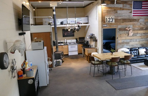 This old gas station converted space is unique just like us. Our place is located on US HWY2, close to everything. Just 1 block to access the atv/utv/snowmobile trail, 3 blocks to the bike/walking trail (Iron Belle), and centrally located between the skills hills. Copper Peak and Lake Superior only a short drive away.