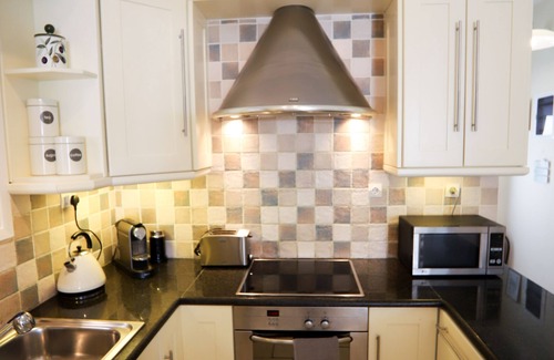 The kitchen is well equipped with a Nespresso coffee maker, microwave, wine cooler, integrated dishwasher and oven/hob and a wide range of kitchen equipment.