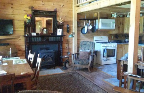 Log Cabin secluded in the White Mountains of NH with Breathtaking Mountain views. Appointed with Oak Antiques , Victorian furniture and Granite Kitchen counters. At the end of the day relax by the fireplace or gather around a camp fire and view the stars and mountains. Nestled at the base of Twin Mountain the 9th & 13 th tallest mountains in the northeast.Get away from it all, you won't see passing cars or other homes from this property. This cabin is also on the Iron Horse snowmobile trail in Twin Mtn. No need to trailer your sled once here. 5 minutes to Bretton Woods for skiing.