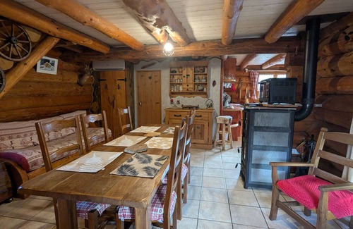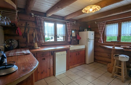 Lovers of the unusual, immerse yourself in the world of trappers by staying at the Léoréine lodge for a weekend or a week. Catherine and Eric welcome you into an extraordinary universe. The house is full of surprising and original details, each piece of trunk and branch has found its purpose. The Davy Crockett juniors will quickly monopolize their hideaway on the 2nd floor. Rest, walks, skiing, water sports, local crafts, you'll have plenty to occupy your stay in this beautiful Vosges region not far from Gérardmer. For families who want to stay together, a second cottage for 6 people is located nearby. Detached log cabin on three levels, comprising: Ground floor: Entrance to open-plan kitchen/living room (electric oven, refrigerator, freezer, 9-place dishwasher, filter and pod coffee maker, kettle, toaster, raclette machine and blender, microwave, 4-burner gas stove). - Living area - Shower room with toilet, washing machine, walk-in shower with curtains, hairdryer.