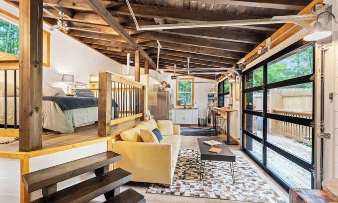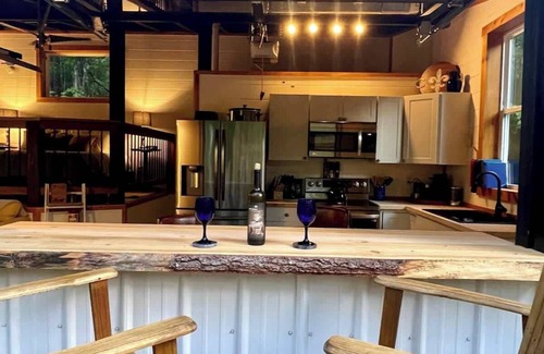 Welcome to Great Expectations, your dream couples' cabin nestled within the breathtaking beauty of Cliffview Resort, near the enchanting Red River Gorge and Natural Bridge. This gem, freshly introduced to the market, boasts a unique feature: not one, but two expansive garage doors that seamlessly blend your indoor and outdoor experiences.