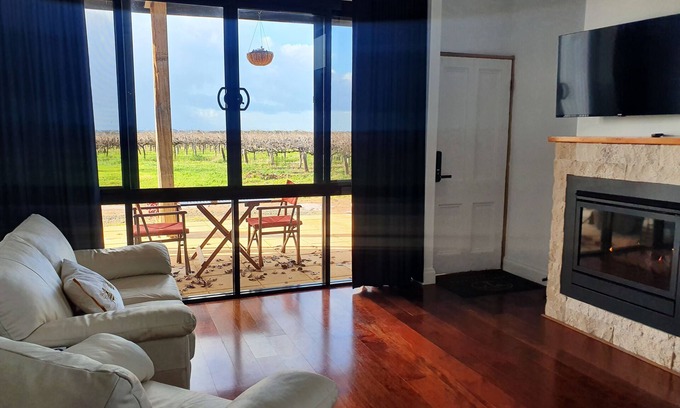 Kick back and relax in this unique luxury space on the edge of the winery with views directly into the vineyard. Great retreat for a couple fully equipped kitchen comfortable lounge. In winter enjoy the ambience warmth of the gas log fire. Reverse cycle air-conditioning to set your own desired temperature. Monster ceiling fan hanging high from miniorb ceiling. King size bed and large bathroom with double vanities & shower Private patio Close to Angas Plains Wines Cellar Door