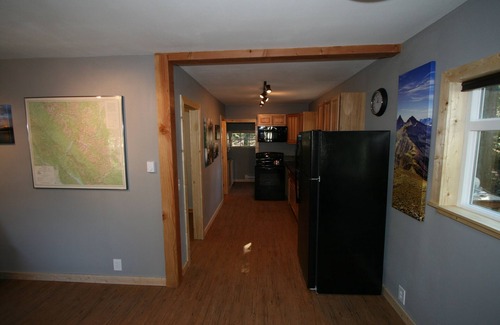 Unique and totally remodeled cabin near Glacier National Park. It has two bedrooms, one of which is a south facing sun room with a Daybed. There is also a queen size hide-a-bed in the living room. It is decorated with personal pictures of Glacier National Park, and a large topographical map of the Park. There is a nice outdoor seating area with picnic table, chairs, and firepit amongst the pine trees. The cabin sits immediately off, and adjacent to, US Highway 2 with convenient access to Glacier Park to the east, or Kalispell and Whitefish to the west.