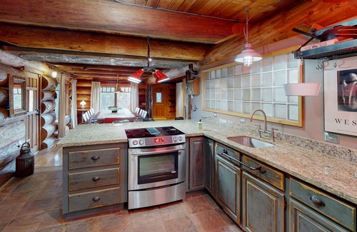 Once you've had your fill of the day out exploring, settle back in at your vacation rental tucked away within the woods of Washington. This home, boasting logs cut from trees right on the property, is ideal for guests looking for a quiet and relaxing atmosphere. It features a gorgeous patio area, a massive full kitchen equipped with stainless steel appliances and dual sinks, and a wide and spacious living area for you and your friends to relax in. Whip up delicious meals for everyone, then gather around the large dining table for a phenomenal feast. In the morning, sit out on the patio with a hot cup of coffee in-hand as you watch the sunrise. This delightful home comes adorned with various antiques, ranging from awe-inspiring pictures and model planes, to vintage electronics and an upright bass mounted above the stairway that leads up to the second floor.