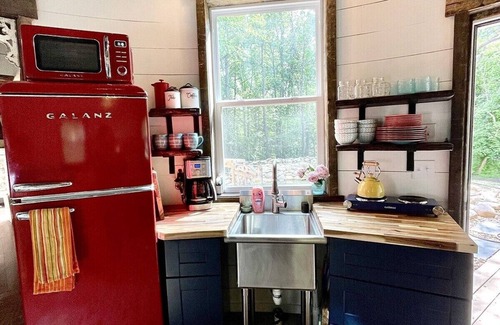 Inside Space: Inside the Silo there is a fully stocked Kitchen with an electric cooktop, microwave, toaster oven, coffee pot, full size refrigerator w/ freezer, utensils and everything for your cooking needs. We provide coffee, tea, sugar, flour, condiments(ketchup, mustard, mayo) along with spices and cooking oils.