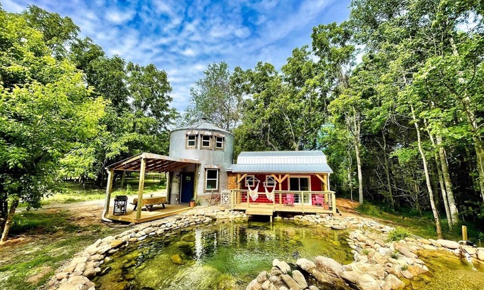 *Please read entire listing* Our goal is to provide a unique adventure for guests with all the conveniences of home. The Barn & Silo is surrounded by a lush forest on 3 sides and Farm Animals on the other. Outdoor Space: Your private swim pond is situated perfectly between the Barn deck and Silo Porch facing a seemingly endless forest. The fencing for the dwarf goats, sheep, and other farm animals is steps from the Silo Porch. The swim pond is perfect for cooling off on hot days, an evening swim under the stars, or just enjoying the view. The pond uses only natural filtration to stay clean, no chemicals. This amazing ecosystem attracts all kinds of frogs, tadpoles, hummingbirds, dragonflys, butterflies and other friends from nature. While it is a pond, it is separated from ground water so we are able to maintain clean clear water. The waterfall adds to the ambiance and privacy.