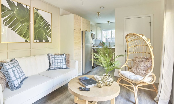 MONTHLY DISCOUNT! NEWLY REMODELED! Modern cozy one bedroom tropical inspired private guesthouse with separate entrance & private fenced in yard in a quiet neighborhood. Free street parking right in front of your entrance. CENTRALLY LOCATED explore the best that Southern California has to offer from gorgeous beaches like Laguna & Newport to Disneyland (5.5 miles), Knott’s Berry Farm (4.8 miles), to the nightlife & foodie paradise of L.A. (18 miles) *PET FEE is $10 per pet per night (2 pet max)