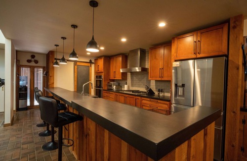 Whether it's a family dinner, a dinner with friends, or a quite meal for two, the home offers an indoor and outdoor cooking and dinning experience. The large indoor kitchen has ample amount of space for cooking and has a breakfast bar for four, and a six person indoor table. For those who enjoy cooking outdoors, there is a large grille, smoker and Blackstone and a table for six that can be used to cook almost any meal while enjoying the views of the river.