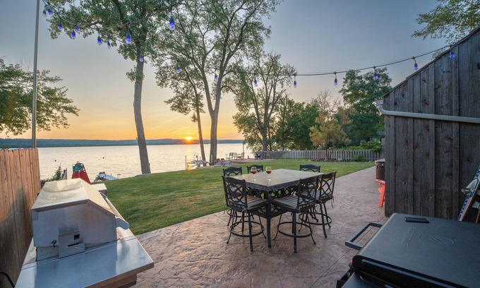 Unique riverfront home w/beach, dock, watersports, firepit, hot tub, and sauna! | House in East Peoria