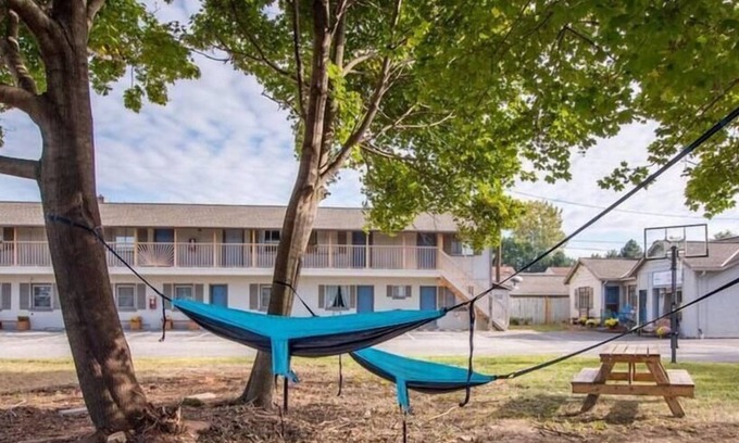 This extraordinary property boasts an array of amenities to ensure your special day is unforgettable. Your guests will enjoy comfortable family and dorm-style rooms, alongside a charming three-bedroom house. Engage in fun activities with community spaces that include a multipurpose room equipped with a 65-inch mounted flat-screen TV, ping pong, board games, and yard games. The fully equipped kitchen allows you to prepare meals together, while the outdoor firepit, hammocks, and spacious green areas set the stage for relaxation and bonding. Whether you’re planning a grand celebration or a casual get-together, everything you need is right at your fingertips.