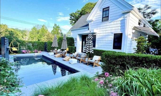 Unique 1700's House/Barn compound that is perfectly located walking distance to Boardwalk Beach and Sandwich shops and restaurants. House can sleep up to 14 and is perfect for family getaways. Outdoor heated pool and lovely yard for family fun. A casual atmosphere on this fun and modern property. Affectionately named the Jelly House, it has history and many spaces throughout the property to make vacation memories.