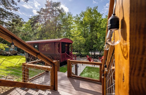 Our Scarlet Gypsy wagon is an extremely unique stay with modern amenities. It is known for its designer touches and comfort, making for the perfect getaway for you and your family!