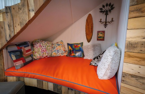 The bright colors, weird shapes, odd artwork and things that don't match all have a rhyme and rhythm of their own. I often find these items on my many treasure hunts (I am a huge fan of resale shopping!), and then use the resale gems to decorate the HEART of the BINS. It boasts a bohemian design with some hippie flare and a little bit eclectic. My passion and style can be described as quirky and weird, and I am so very proud of my design aesthetic beautifully featured inside the BINS.