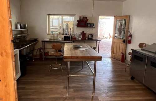 Come to a place where contemporary art and meditative relaxation merge to form a singular aesthetic both indoors and out. A unique lodging experience offered by Austin Arts Community, located in the heart of the Hot Springs Historic District in downtown Truth or Consequences. In a separate grotto on the premises, two authentic stone soaking tubs draw directly from the mineral-rich hot springs for which the city is known — delivering comfort and therapy only nature can provide. You will have access to a private bedroom, bathroom and kitchen. Come explore and relax.