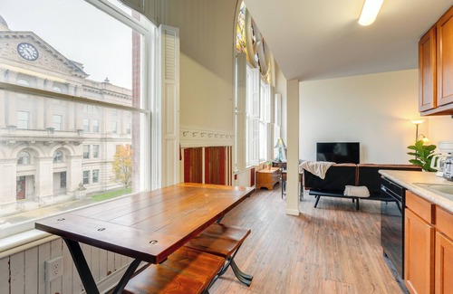 If you're looking for a couple's retreat, you've come to the right place! This 1-bath studio loft is convenient, cozy, and stylish, with a massive stained-glass window and exposed beams. Explore the local attractions like Sunken Gardens and Hanging Rock National Natural Landmark with your loved one before returning to prepare a home-cooked meal in the kitchen and curl up in front of the Smart TV.