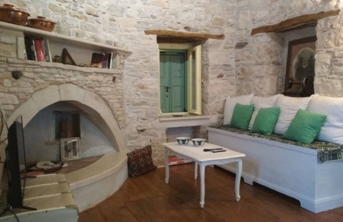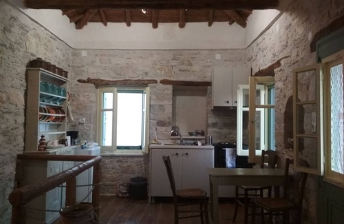 It is a small mansion build in the middle of 18th century, exclusively out of stone and olive tree wood, by one of the most prominent builders of the era. Its roof, a real masterpiece, was renovated around 1930 and it still retains its initial style. It is build in two levels. In the ground floor is the bedroom and the bathroom while on the upper floor is an open plan living-room and kitchen. It is located in one of the most beautiful settlings of the Archipelagos, called Koumeika and in a plot of 300 square meters. There is also a big yard and a parking space and is surrounded by lots of plants and trees. Amongst its features is a stone made wood stove at least 200 years old. Following a traditional path for 15 minutes, a distance at about one kilometer, there are two of the most beautiful beaches of the island, Kaladakia and Balos where you can find very good taverns, The village has a bakery shop, two mini-market shops and two traditional coffee places in one of those you can find good quality food in a very low price. In its narrow streets one can walk freely, away from mass tourism without cars and traffic. We have renovated this house just the past year with a lot of effort, personal work and lots of love trying to retain its traditional architectural style. Local builders have helped us in this effort while the upper floor was renovated stone by stone by one of the most talented decorator of the Aegean