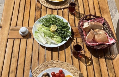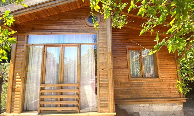 It is a homeless house in a quiet location at the foot of the ancient Olympos mountain. location is 120 meters from the sea . The house consists of a bedroom+living room and toilet bathroom. The house has a fridge and air conditioner. A one-size-fits-all kitchen is available outside the house and it will be yours only. You will find peace in this house made of cedar wood intertwined with nature. ( I am not a hotel or business, I will have no other guests than you. )