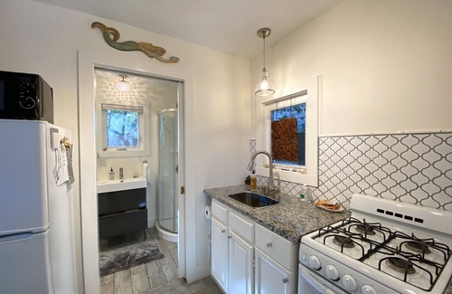 If you've ever seen Tiny House Nation and thought you would like to experience living in a unique tiny house, then here is your chance. The Zen tiny house isn't on wheels but is a modern flat tucked underneath a huge magnolia tree in my backyard inside a quiet, historic neighborhood with huge live oaks. The beaches are only 2.25 miles away and downtown Charleston about a 10-15 minute car ride. Use the complimentary cruiser bikes and ride to the beach or ride downtown and catch the spectacular view over the Ravenel Bridge.