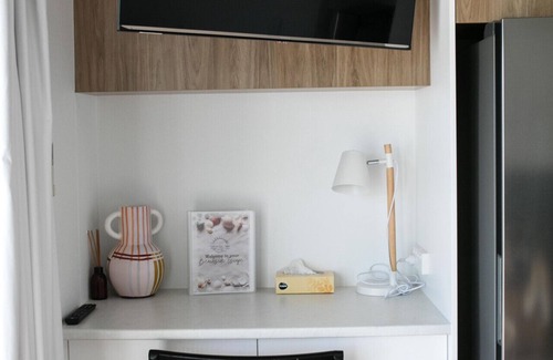 Inside, you'll find a spacious and tastefully designed open-plan living area, featuring a fully equipped kitchen, a comfortable queen-sized bed, and a modern ensuite bathroom. The unit also boasts air conditioning, complimentary Wi-Fi, and a modern large size TV (with a Netflix account for guests) for your entertainment.