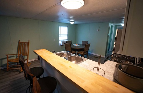 This Unit is supplied with a cozy living room, a stocked kitchen, as well as 3 bedrooms with 1 King Bed, 2 Queen beds, 2 Twin beds, and a pull out couch! This unit also has 1 bathroom with a new walk in tile shower! All furnishings are brand new in this unit with super comfy bedding! Our property has adequate parking for all guests and trailers for Atv’s.