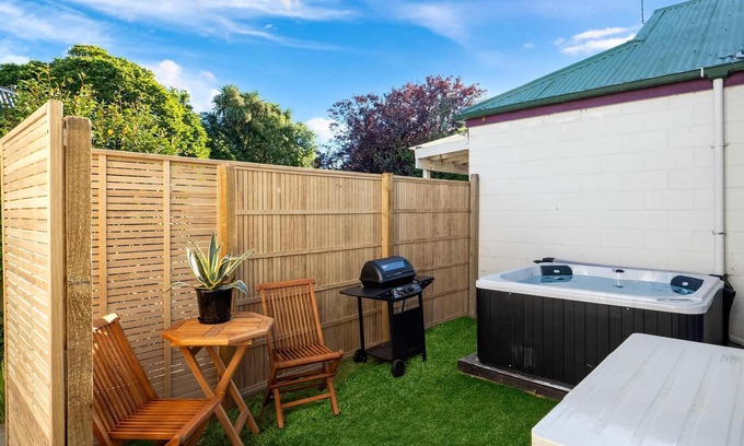 Private fenced outdoor area with outdoor dinning, Spa Bath and bbq.