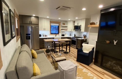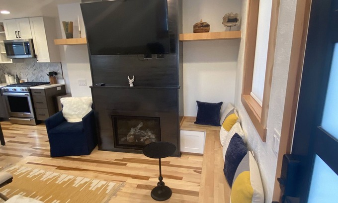 Enjoy a cozy stay at this centrally-located 600 sq ft new construction micro-house. Located near the university, downtown, Dornblaser Field, UM Golf Course, the fairgrounds and Glacier Rink. The house has AC, fireplace and washer/dryer with a small deck. The location is excellent and the stylish accommodations feature local art.