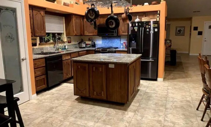 Full kitchen, very big living room and dining room with a Pac Man machine. This property can comfortably fit 5 people and we are pet friendly. If you want to be in Las Vegas but away from the crowd this is the place to be. This property is extremely quite and very laid back.