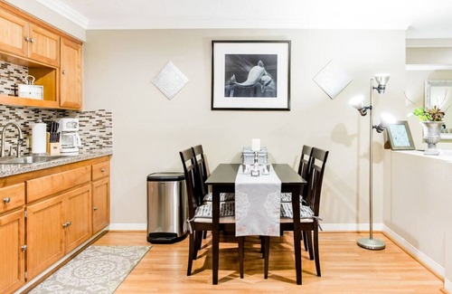 There is an all new full bathroom with granite counter tops, luxury style towels, a large walk-in closet. A complete new kitchen with stainless steel appliances and fully equipped for your stay. There is a dining area, HD TV and high speed internet/WIFI. Beautiful reflective artwork and new furniture is placed throughout the interior. The space includes a very private, covered patio with chandelier, along with private reserved parking 5 steps from your entry. There is en suite air conditioning and heat. The walk-in closet doubles as a small nursery- there is a window to outdoors in the walk-in. Fits our twin rollaway bed or our pack'n'play -both available for you.