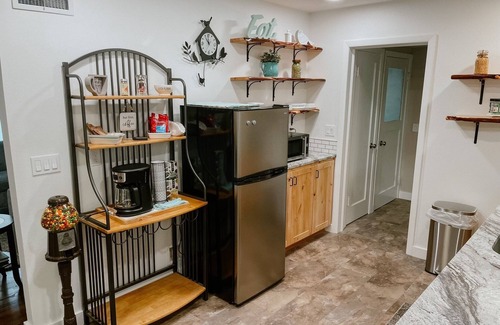 We greet every guest personally so we can put a face with your name! Guests come here to unplug from technology (no Wi-Fi here) and just enjoy the peacefulness. You will find a kitchen that has all the basics. Coffee, teas, some snacks and everything you need to make basic meals. Full sized washer and dryer. Full bath with personal basics provided. Deck with porch swing is great for reading or a glass of wine!