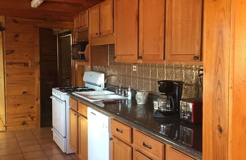 This property is perfect for family and friends to come and fish or just enjoy the view and unwind. It has a boat slip and separate pier with a cleaning station. We are located 5 minutes from the boat ramp at Huxley Bay Marina. The cabin easily sleeps six people with a full size bed and a queen size bed in the second bedroom and a queen size bed in the master bedroom. The living room has a sofa and recliner. The cabin has one full bath and a half bath with a washer and dryer. We have towels and linens. The kitchen is stocked with dishes, pots and pans and has a dining table that seats six. There is a family store nearby for convenience with a restaurant that has home cooking and great pizza. They also have live bait (minnows and worms).