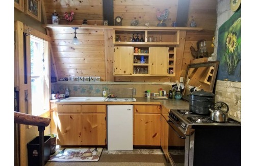 Ready for a bit of adventure? There is outgoing plumbing only (no running water). Bucket your washing and flushing water out of the creek off of the back deck (runs most of the year). Bottled drinking and cooking water are also provided.