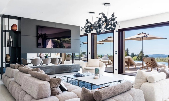Throughout the property, you'll be treated to unobstructed panoramic views, providing a stunning backdrop to your escape. This villa is crafted to be an idyllic sanctuary, whether you're planning an unforgettable family vacation or a serene getaway with friends on the French Riviera. Every detail caters to a luxury and relaxing experience.